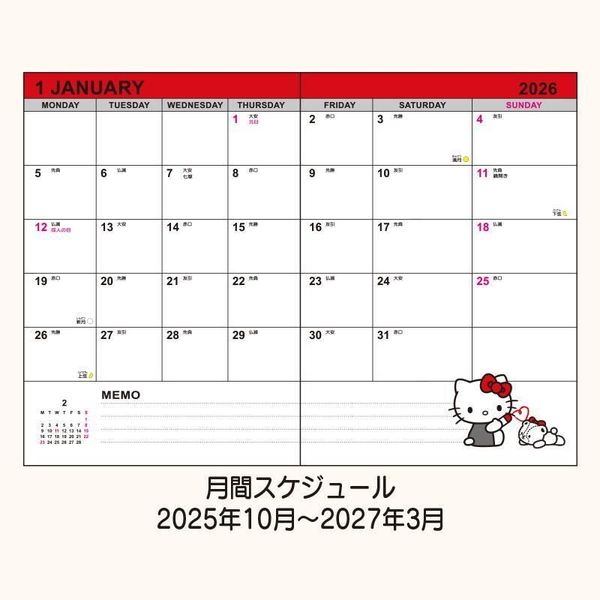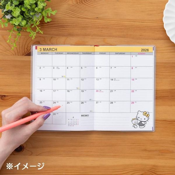 SANRIO-HELLO KITTY 日版 2026 B6 月間 記事 手帳 DATEBOOK SCHEDULE BOOK 年曆 行事曆 備忘錄 附貼紙 凱蒂貓 吉蒂貓 (622974) 【平行進口】
