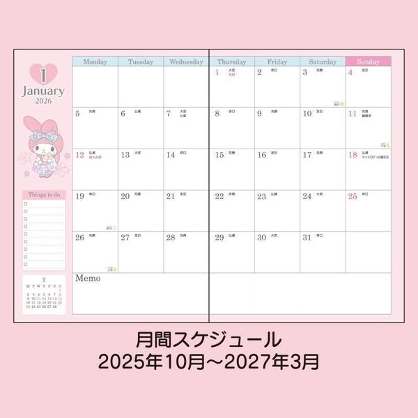 SANRIO-MY MELODY 日版 2026 A5 月間 記事 手帳 DATEBOOK SCHEDULE BOOK 年曆 行事曆 備忘錄 附貼紙 美樂蒂 (623063) 【平行進口】