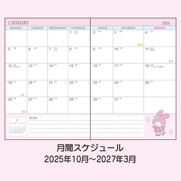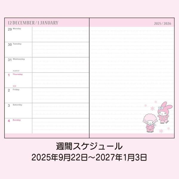SANRIO-MY MELODY 日版 2026 橫紋款 B6 日記 手帳 DAIRY SCHEDULE BOOK 年曆 行事曆 備忘錄 附貼紙 美樂蒂 (623247) 【平行進口】