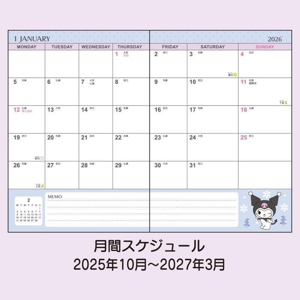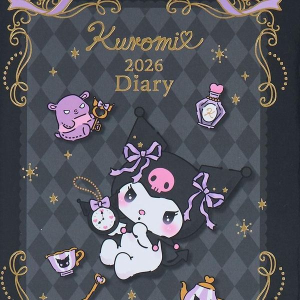 SANRIO-KUROMI 日版 2026 方格款 B6 日記 手帳 DAIRY SCHEDULE BOOK 年曆 行事曆 備忘錄 附貼紙 酷洛米 庫洛米 可羅米 (623810) 【平行進口】