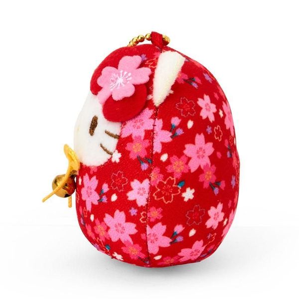 SANRIO-HELLO KITTY 日版 櫻花達摩 造型 毛公仔 鑰匙鍊 鎖匙扣 吊飾 掛件 2024年款 (紅) 凱蒂貓 吉蒂貓 【平行進口】