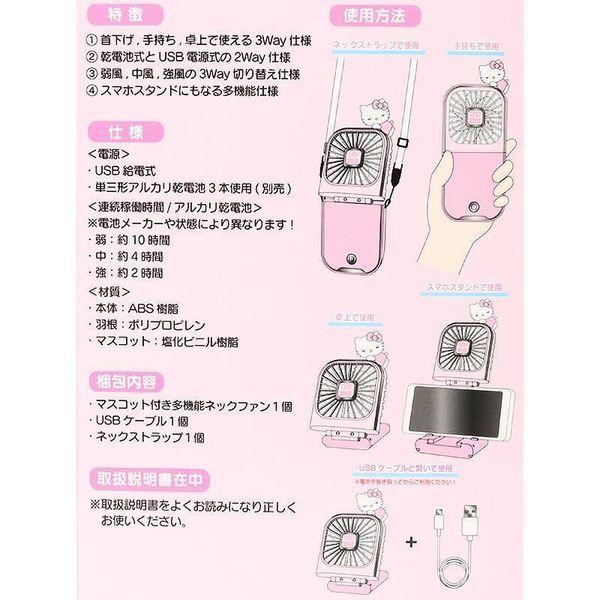SANRIO-HELLO KITTY 日版 多用途 桌上 便携 掛頸 風扇仔 手機 支架 2025年款 凱蒂貓 吉蒂貓 【平行進口】