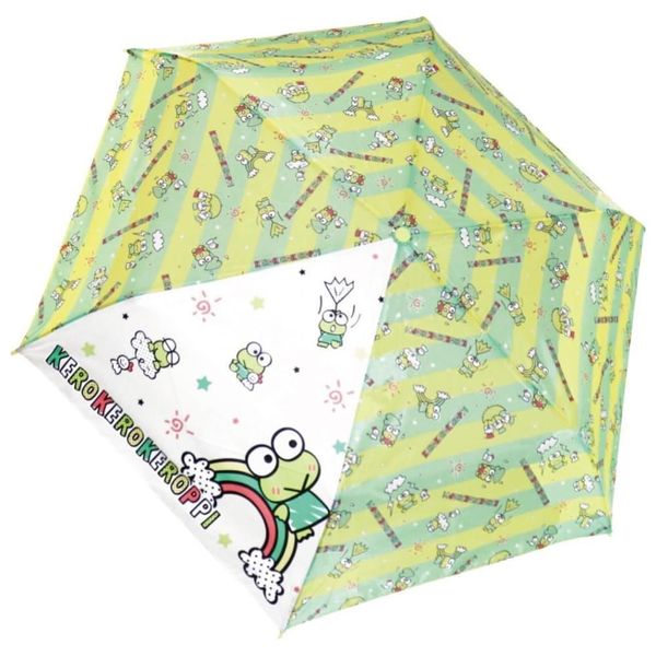 SANRIO-KEROKEROKEROPPI 青蛙 KEROPPI 日版 縮骨遮 摺疊傘 彎手柄 便攜 雨傘 雨具 53CM 戶外 便攜 防風 大眼蛙 可洛比 (171338401) 【平行進口】