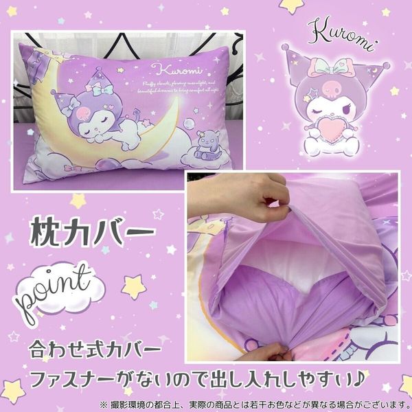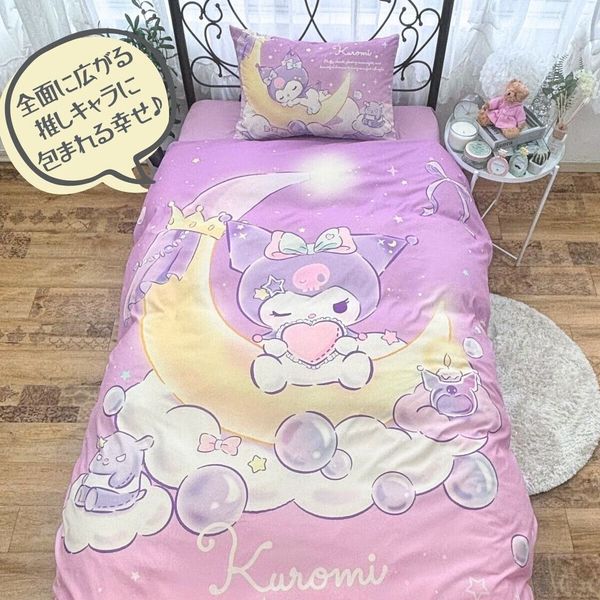 SANRIO-KUROMI 日版 床笠 被笠 枕頭套 被套 床罩 被袋 枕袋 床單 床品三件套 2025年款 酷洛米 庫洛米 可羅米 (SB-681-S) (月亮晚安款) 日本限定 【平行進口】