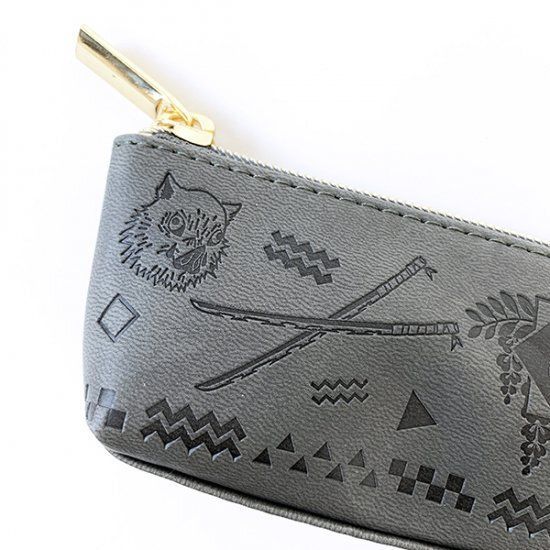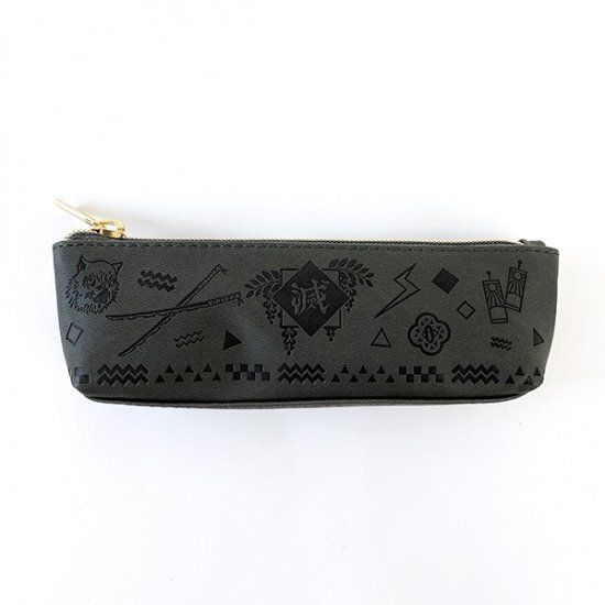 ANIPLEX-鬼滅之刃 鬼滅の刃 日版 PU皮 長形 多用途 筆袋 收納袋 化妝袋 儲物袋 鬼殺隊 惡魔殺手 2020年 皮革系列 (灰) 【平行進口】