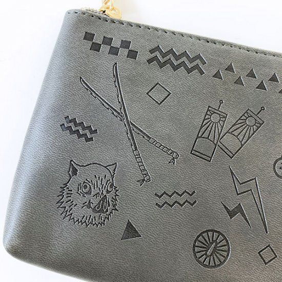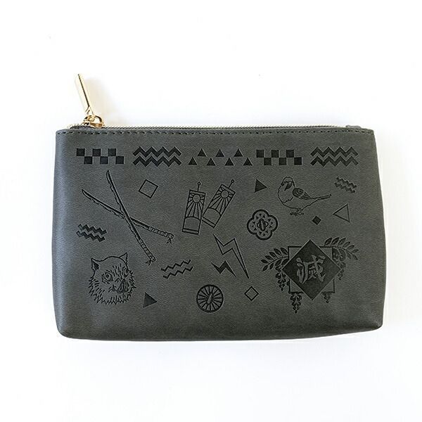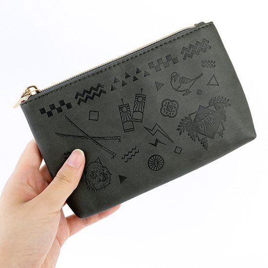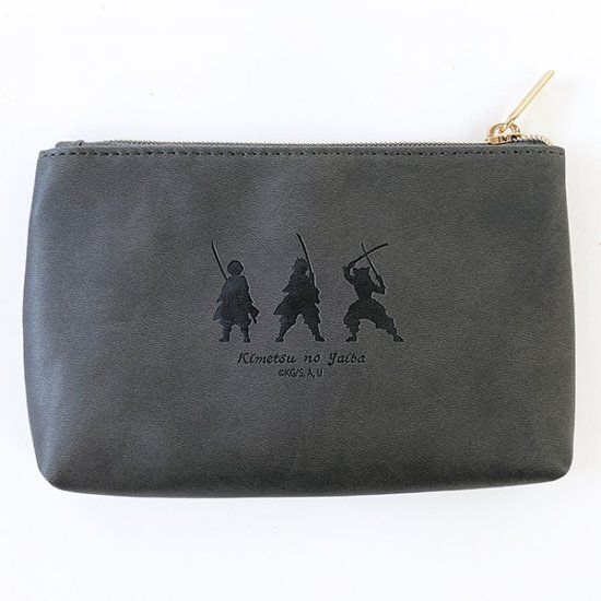 ANIPLEX-鬼滅之刃 鬼滅の刃 日版 PU皮 扁平 化妝袋 收納袋 儲物袋 2020年 皮革系列 鬼殺隊 惡魔殺手 (灰) 【平行進口】