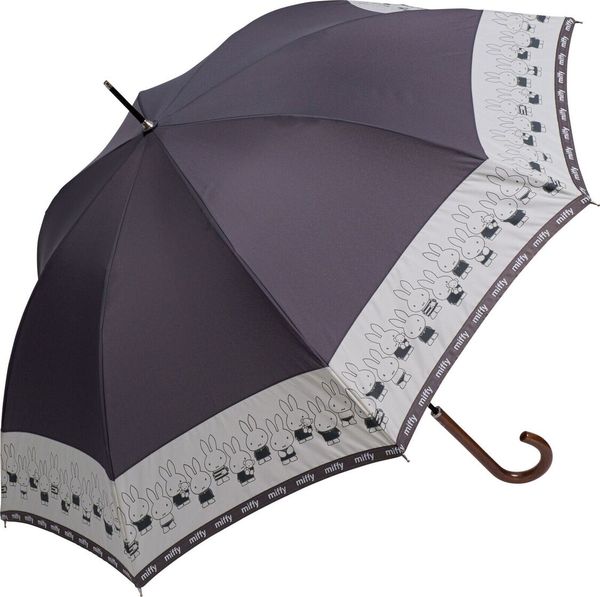 MIFFY-MIFFY 米菲 日版 雨傘 長傘 木製 彎手柄 長遮 60CM 雨具 便攜 防風 MIFFY KIRITSUGI (深灰) 【平行進口】