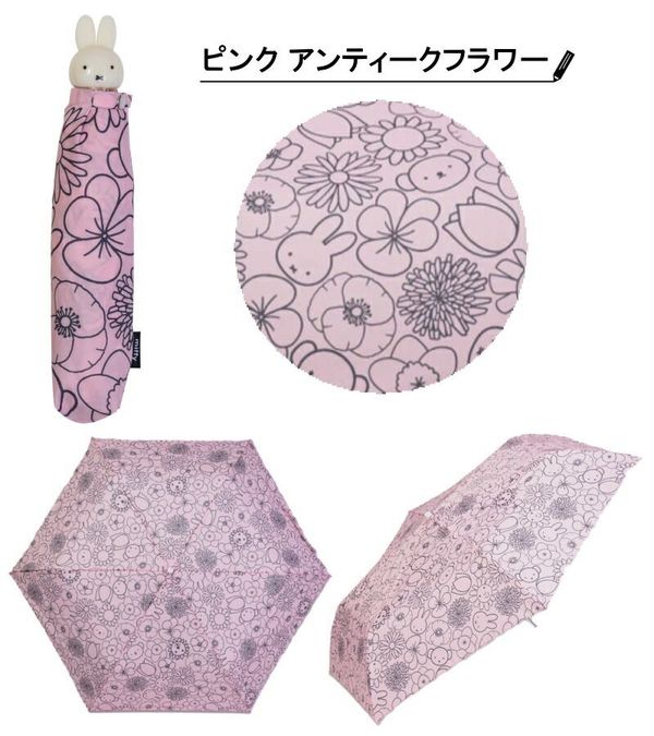 MIFFY-MIFFY 米菲 日版 雨傘 折疊傘 短傘 公仔頭 手柄 縮骨遮 雨具 便攜 防風 米菲兔 (粉紅) 【平行進口】
