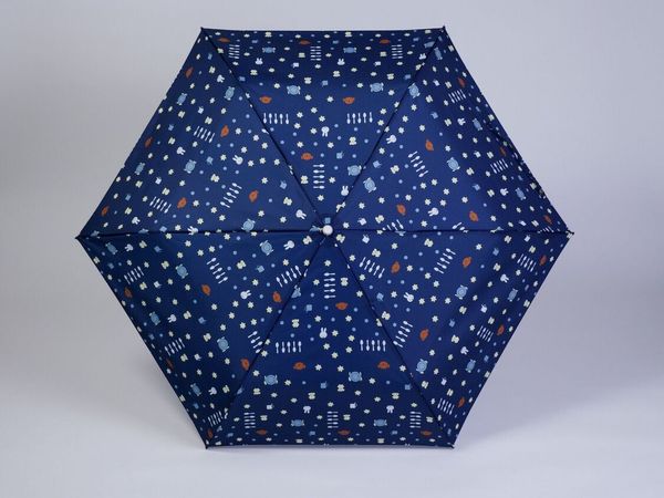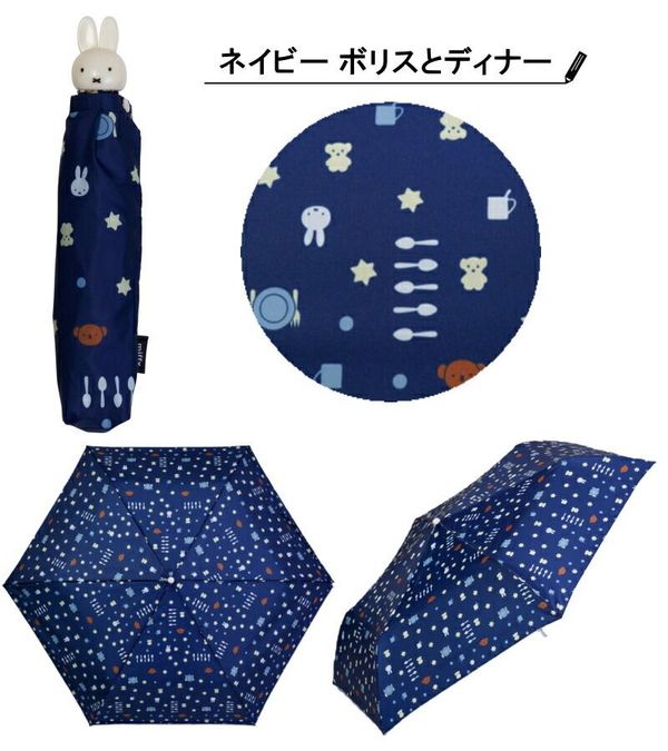 MIFFY-MIFFY 米菲 日版 雨傘 折疊傘 短傘 公仔頭 手柄 縮骨遮 雨具 便攜 防風 米菲兔 (深藍) 【平行進口】