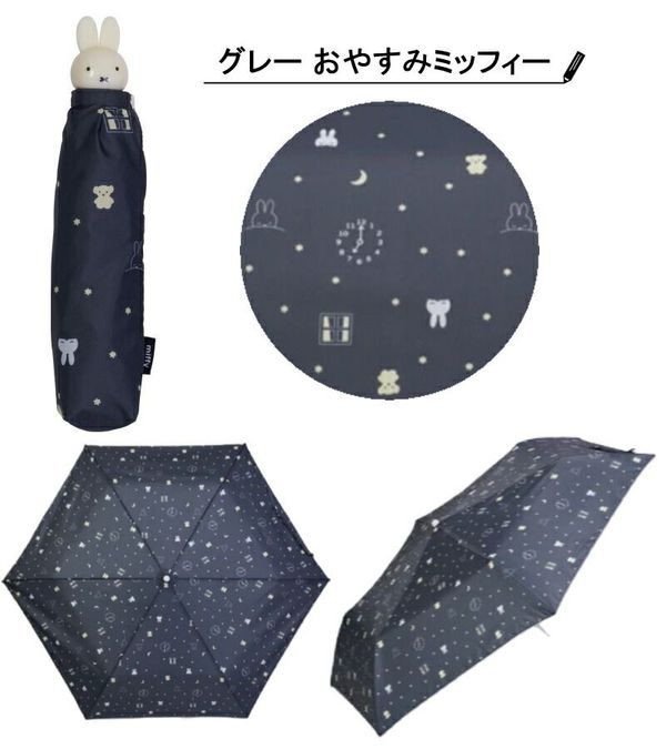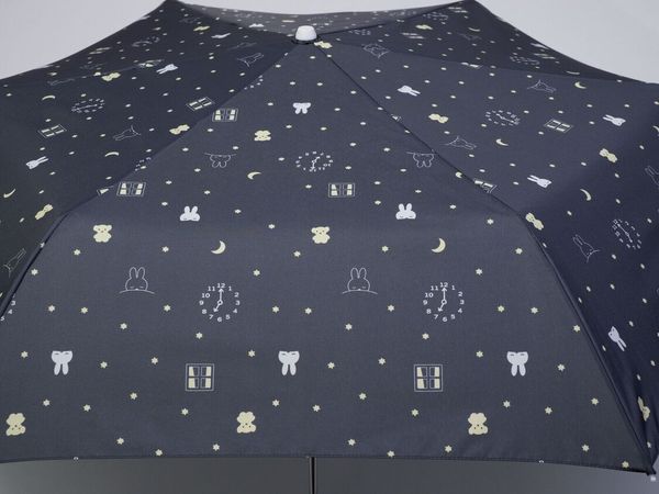 MIFFY-MIFFY 米菲 日版 雨傘 折疊傘 短傘 公仔頭 手柄 縮骨遮 雨具 便攜 防風 米菲兔 (黑) 【平行進口】