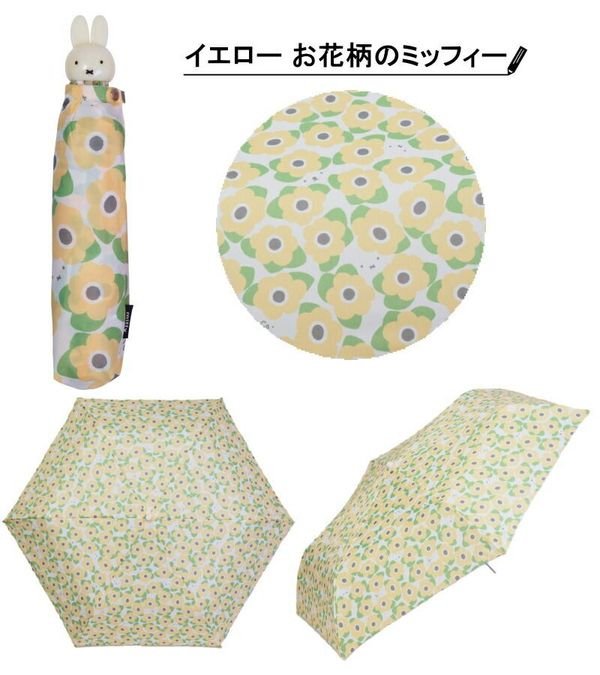 MIFFY-MIFFY 米菲 日版 雨傘 折疊傘 短傘 公仔頭 手柄 縮骨遮 雨具 便攜 防風 米菲兔 (黃) 【平行進口】
