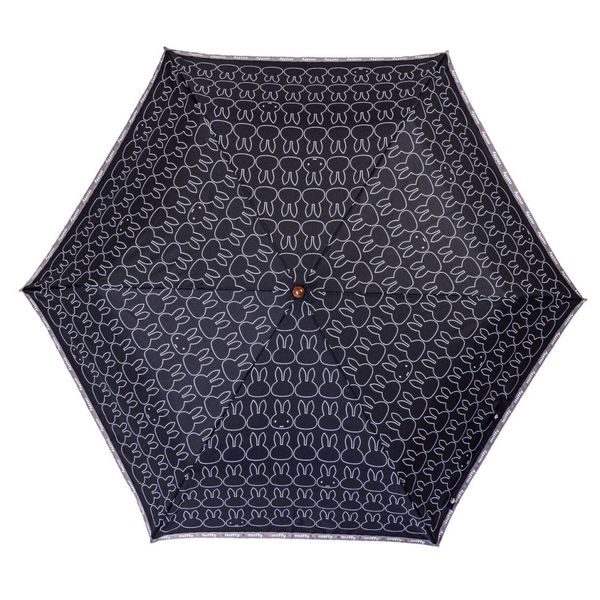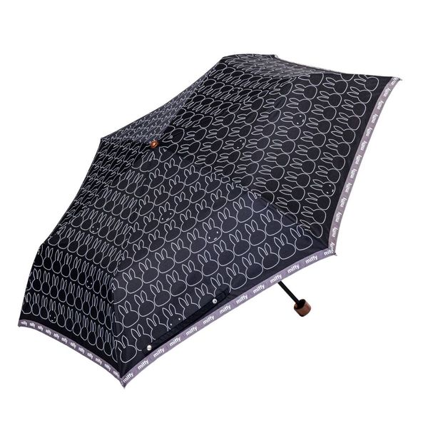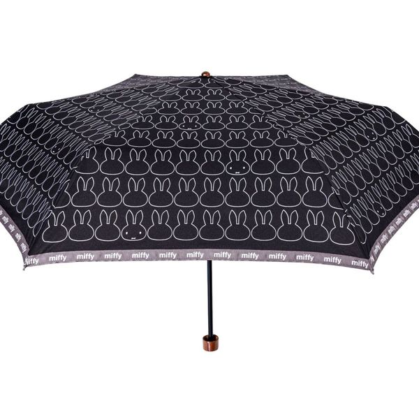 MIFFY-MIFFY 米菲 日版 木手柄 雨傘 折疊傘 短傘 縮骨遮 雨具 便攜 防風 55CM 米菲兔 MIF-530D (黑) 【平行進口】
