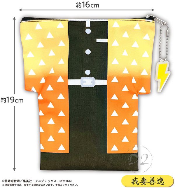 鬼滅之刃 鬼滅の刃 日版 日式 便攜 收納袋 儲物袋 小物袋 附亞克力 吊飾 匙鍊 惡魔殺手 (衣服造型) (我妻善逸) 【平行進口】