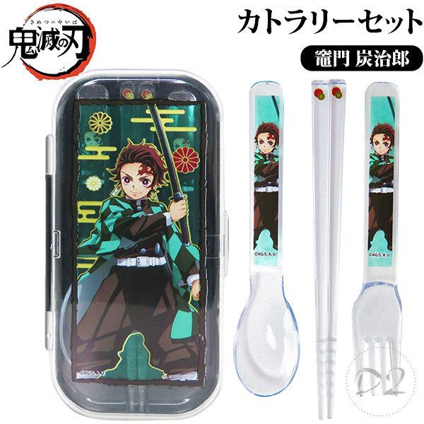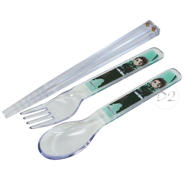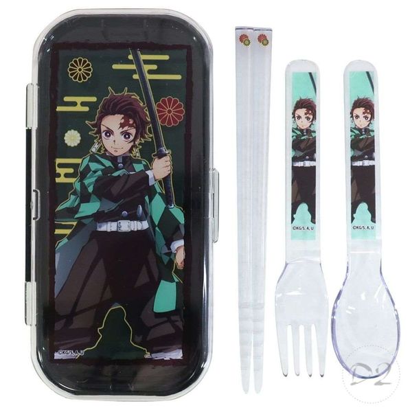 鬼滅之刃 鬼滅の刃 日版 餐具 套裝 3件套連收納盒 筷子 匙羹 勺子 叉子 家居 上學 便攜 (竈門炭治郎) 【平行進口】