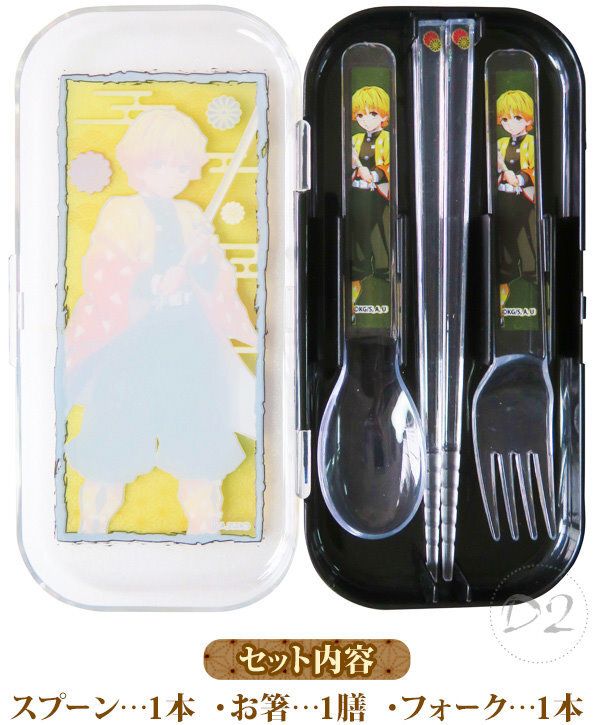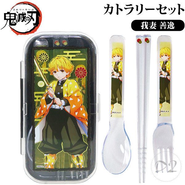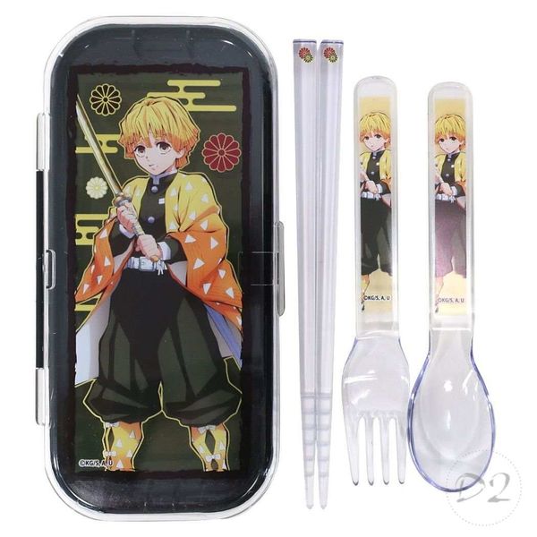 鬼滅之刃 鬼滅の刃 日版 餐具 套裝 3件套連收納盒 筷子 匙羹 勺子 叉子 家居 上學 便攜 (我妻善逸) 【平行進口】