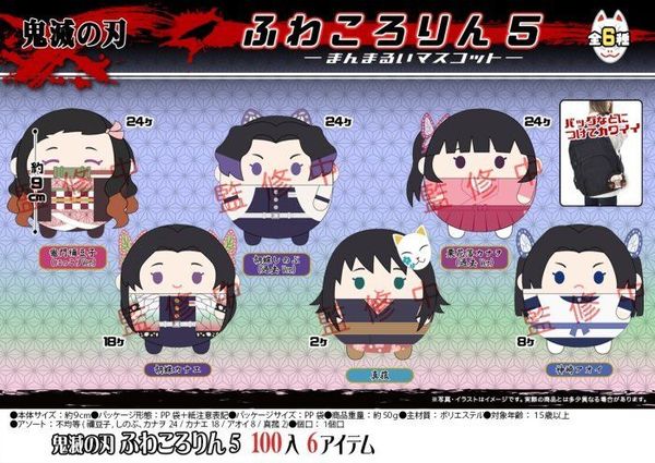 鬼滅之刃 鬼滅の刃 日版 圓咕碌 造型 毛公仔 毛絨 公仔 玩偶 娃娃 鎖匙扣 鑰匙鍊 吊飾 掛件 原盒 全6款 2021 FUWAKORORIN系列 第五彈 VOL.5 鬼殺隊 惡魔殺手 平行進口