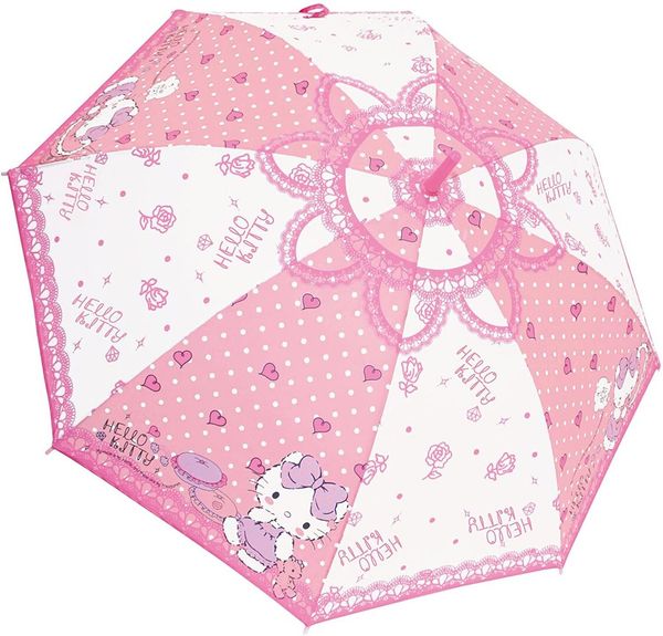 HELLO KITTY 日版 雨傘 長遮 彎手柄 長傘 戶外 便攜 KT 凱蒂貓 吉蒂貓 (玫瑰) 【平行進口】
