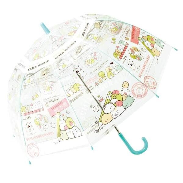 SAN-X SUMIKKO GURASHI 角落生物 日版 圓頂形 透明 兒童 雨傘 小童 長遮 彎手柄 長傘 戶外 便攜 防風 雨具 55CM 角落小夥伴 (A款) 【平行進口】