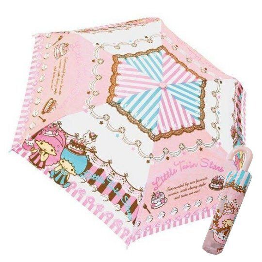 LITTLE TWIN STARS 日版 縮骨遮 摺疊傘 彎手柄 便攜 雨傘 戶外 便攜 防風 雙子星 KIKI LALA (甜品) 【平行進口】