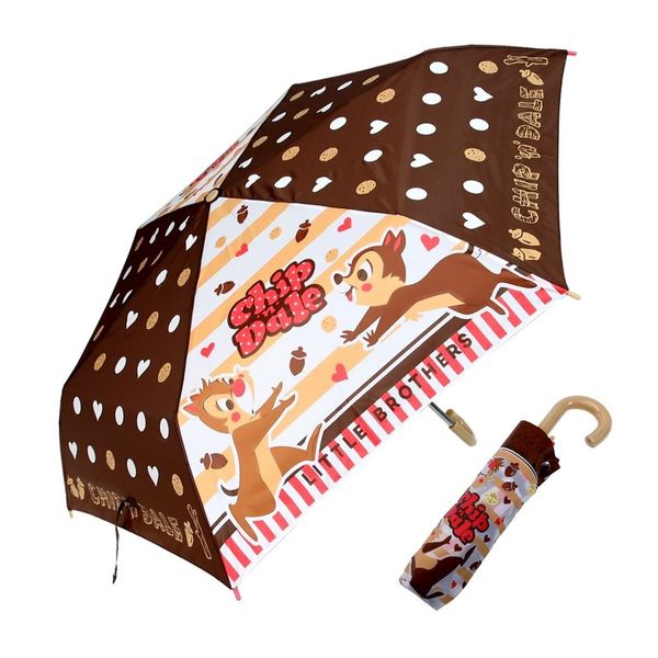 迪士尼 DISNEY CHIP N DALE 日版 縮骨遮 摺疊傘 彎手柄 便攜 雨傘 戶外 便攜 防風 大鼻 鋼牙 奇奇 蒂蒂 (心心) 【平行進口】