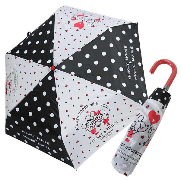 迪士尼 DISNEY MICKEY MOUSE 米奇老鼠 米妮 日版 縮骨遮 摺疊傘 彎手柄 便攜 雨傘 戶外 便攜 防風 (黑白) 【平行進口】