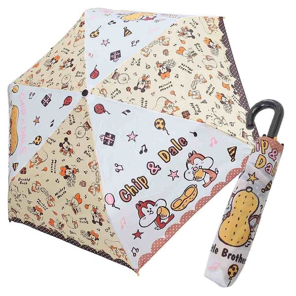 迪士尼 DISNEY CHIP N DALE 日版 縮骨遮 摺疊傘 彎手柄 便攜 雨傘 戶外 便攜 防風 大鼻 鋼牙 奇奇 蒂蒂 (花生) 【平行進口】