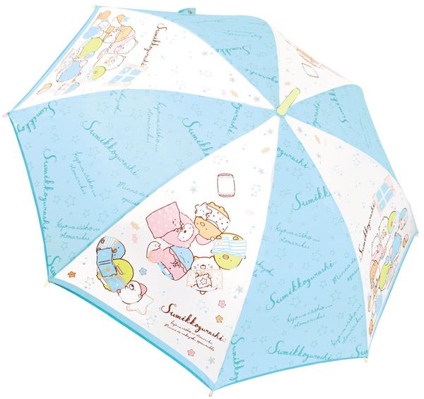 SUMIKKO GURASHI 角落生物 日版 雨傘 長遮 彎手柄 長傘 戶外 便攜 角落小夥伴 (粉藍X白) 【平行進口】