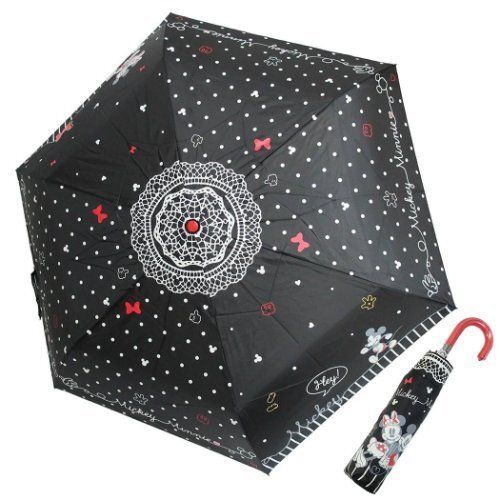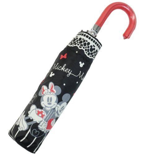 迪士尼 DISNEY MICKEY MOUSE 米奇老鼠 米妮 日版 縮骨遮 摺疊傘 彎手柄 便攜 雨傘 戶外 便攜 防風 (黑色) 【平行進口】