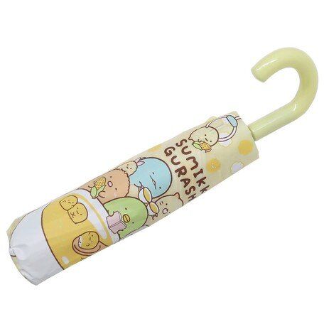 SAN-X SUMIKKO GURASHI 角落生物 日版 縮骨遮 摺疊傘 彎手柄 便攜 雨傘 雨具 53CM 戶外 便攜 防風 角落小夥伴 2021年款 (玉米湯) 【平行進口】