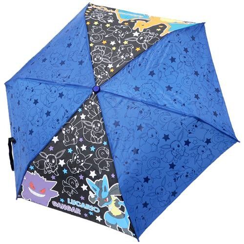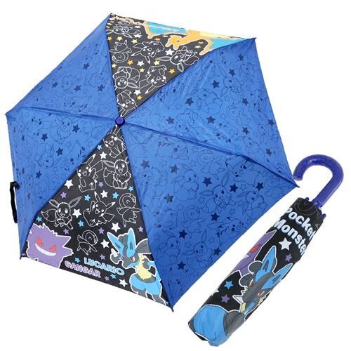 POKÉMON 精靈寶可夢 日版 縮骨遮 摺疊傘 彎手柄 便攜 雨傘 雨具 53CM 戶外 便攜 防風 POKEMON 2021年款 (藍+黑) 【平行進口】