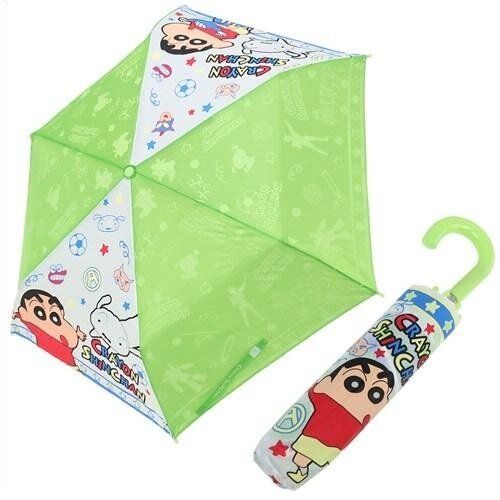 蠟筆小新 日版 縮骨遮 摺疊傘 彎手柄 便攜 雨傘 雨具 53CM 戶外 便攜 防風 野原新之助 2021年款 (綠+白) 【平行進口】