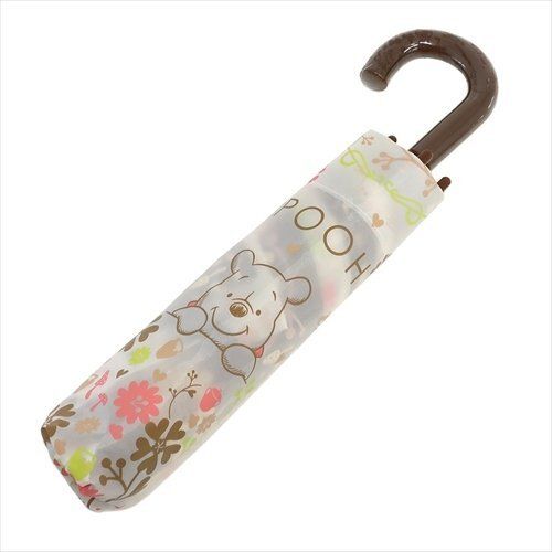 迪士尼 DISNEY WINNIE THE POOH 日版 縮骨遮 摺疊傘 彎手柄 便攜 雨傘 雨具 53CM 戶外 便攜 防風 小熊維尼 2021年款 (啡+白) 【平行進口】