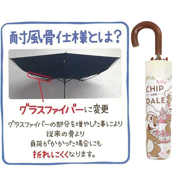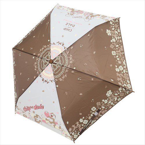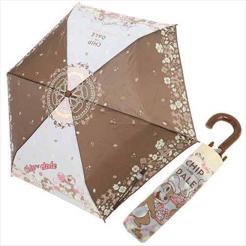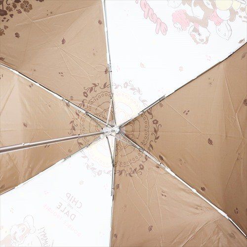 迪士尼 DISNEY CHIP N DALE 日版 縮骨遮 摺疊傘 彎手柄 便攜 雨傘 雨具 53CM 戶外 便攜 防風 奇奇 蒂蒂 大鼻 鋼牙 2021年款 (啡+白) 【平行進口】
