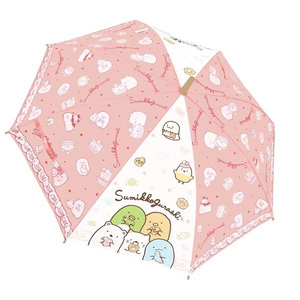 SAN-X SUMIKKO GURASHI 角落生物 日版 雨傘 長遮 長傘 彎手柄 55CM 防風 雨具 戶外 便攜 角落小夥伴 2021年款 (粉紅+白) 【平行進口】