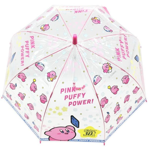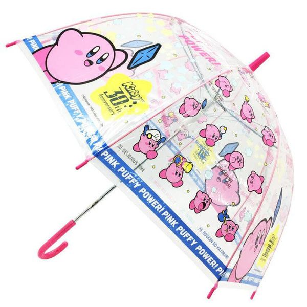 NINTENDO 星之卡比 KIRBY 日版 圓頂形 透明 兒童 雨傘 小童 長遮 彎手柄 長傘 戶外 便攜 防風 雨具 55CM 【平行進口】