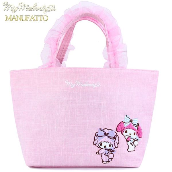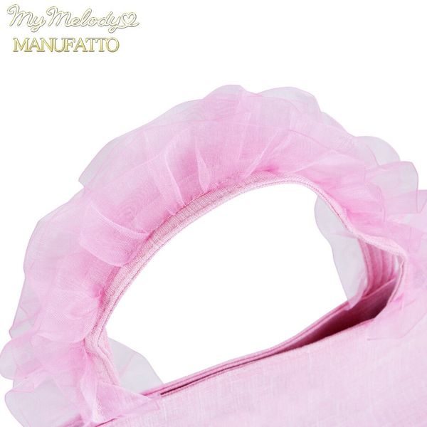 MY MELODY X MY SWEET PIANO 日版 MANUFATTO 聯乘 蕾絲 手柄 造型 帆布 單肩包 手挽袋 手提袋 戶外 便攜 美樂蒂 甜美鋼琴 彼安諾 2021年款 【平行進口】