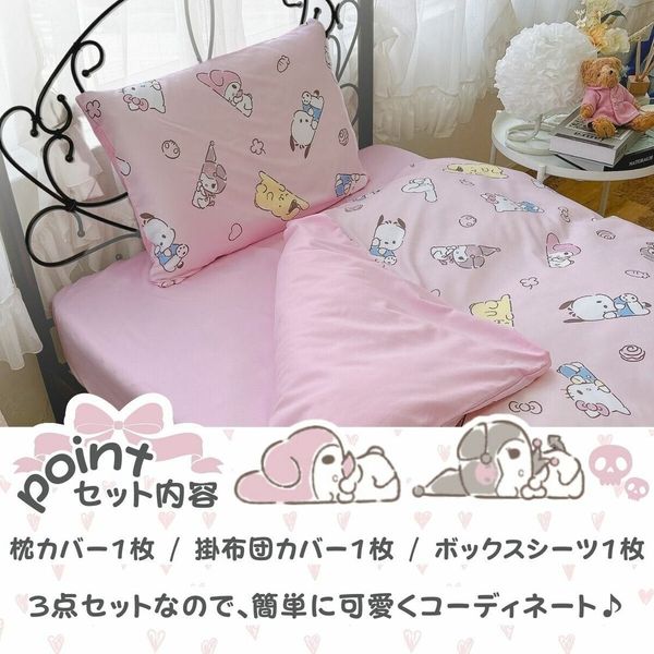 SANRIO-SANRIO CHARACTERS 日版 床笠 被笠 枕頭套 被套 床罩 被袋 枕袋 床單 床品三件套 2024年款 (SS-22-207-60) 日本限定 【平行進口】
