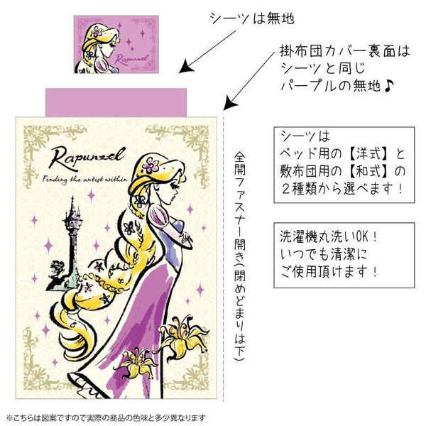 迪士尼-DISNEY PRINCESS 長髮公主 日版 床笠 被笠 枕頭套 被套 床罩 被袋 枕袋 床單 床品三件套 迪士尼公主 樂佩 RAPUNZEL (SB-60) 日本限定 【平行進口】