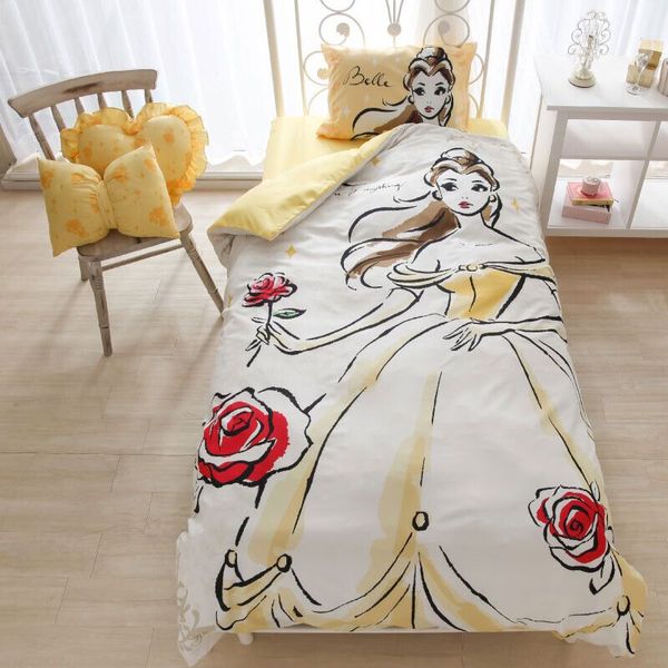 迪士尼-DISNEY PRINCESS 貝兒 日版 床笠 被笠 枕頭套 被套 床罩 被袋 枕袋 床單 床品三件套 迪士尼公主 美女與野獸 BELLE (SB-118) 日本限定 【平行進口】