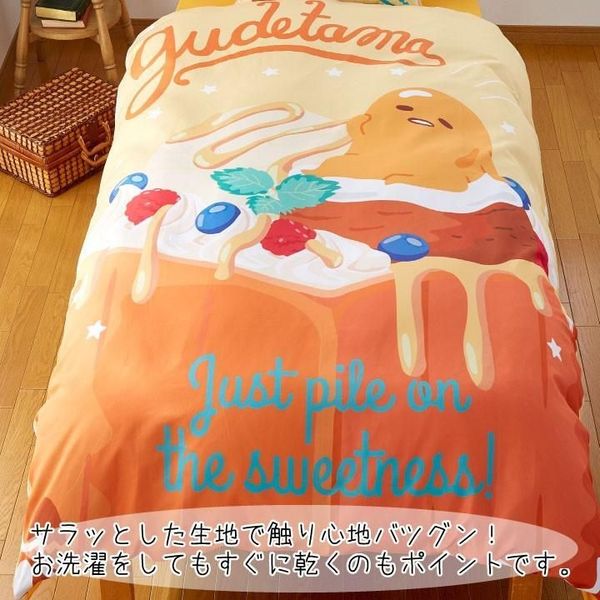 SANRIO-GUDETAMA 蛋黃哥 日版 床笠 被笠 枕頭套 被套 床罩 被袋 枕袋 床單 床品三件套 2019年款 梳乎蛋 懶懶蛋 (SB-479-S) 日本限定 【平行進口】
