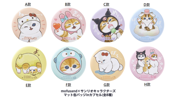 日本進口-MOFUSAND X SANRIO 日版 2023 日本限定 扭蛋 圓形 徽章 胸章 襟章 扣針 背包 裝飾 貓福珊迪 三麗鷗 (A款) 【平行進口】