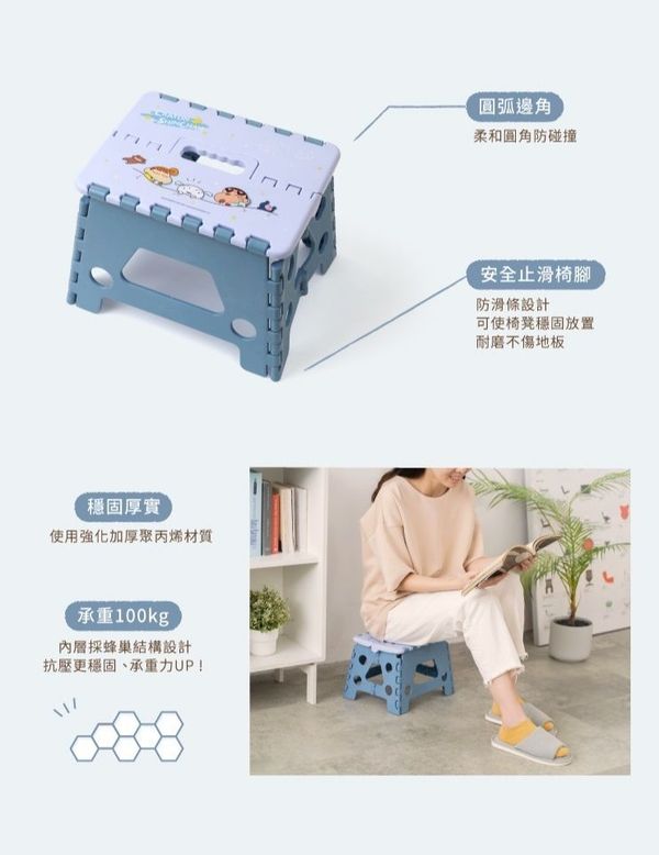 NORNS-蠟筆小新 正版 便攜式 摺疊椅 防滑 椅凳 櫈仔 野原新之助 (晚安) 【平行進口】