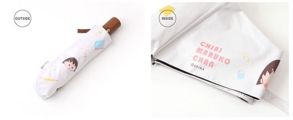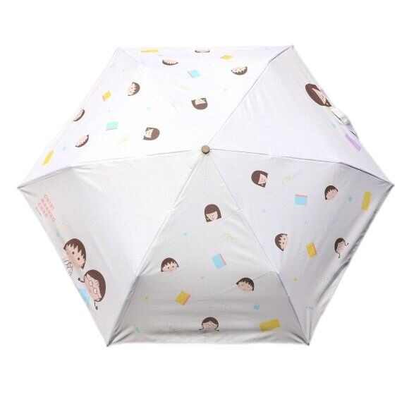 櫻桃小丸子 正版 雨傘 自動 縮骨遮 摺疊傘 輕巧 自動傘 自動開合傘 黑膠 PG布 防曬 防UV 防紫外線光 MARUKO 小丸子 (文具米白) 【平行進口】