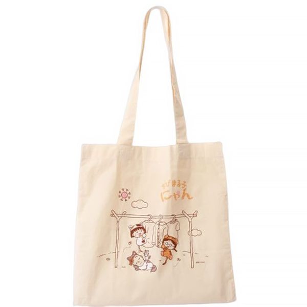櫻桃小丸子 正版 棉質 直身 手挽袋 單肩包 側揹袋 直款 手提袋 戶外 MARUKO 小丸子 (貓咪款) 【平行進口】