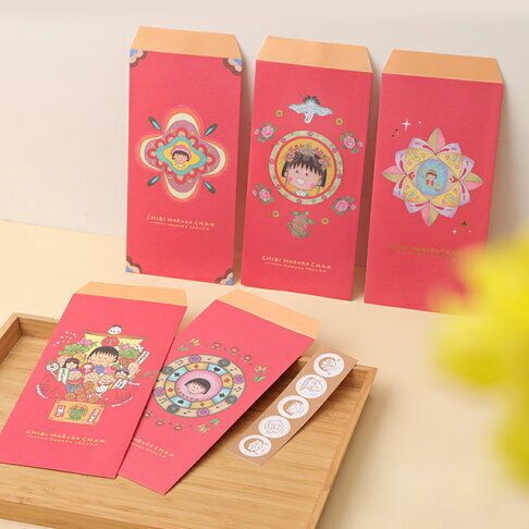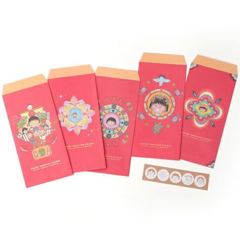 櫻桃小丸子 正版 2023 兔年 賀年 紅色 多用途 利是封 5個裝 紅封包 紅包 壓歲錢 新年 禮金 MARUKO 小丸子 【平行進口】
