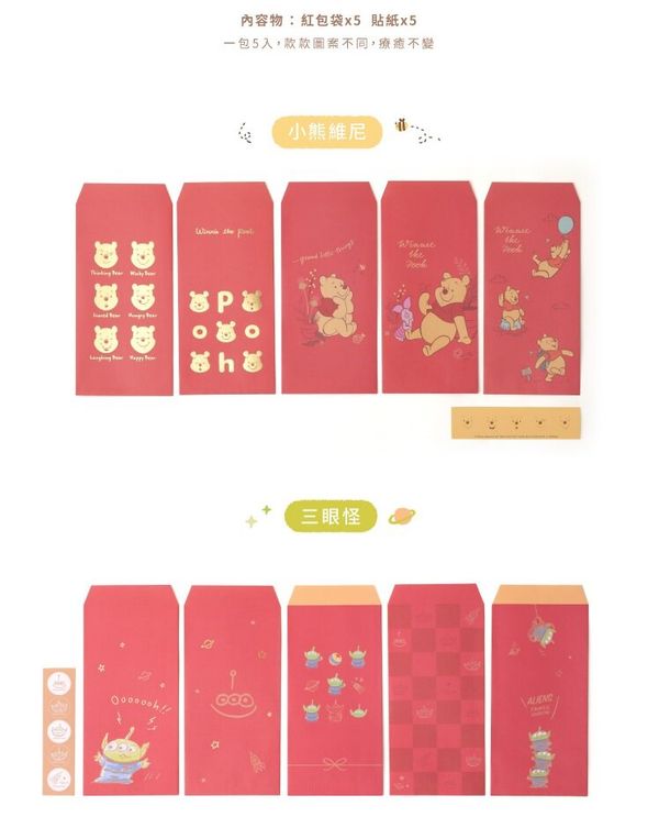 迪士尼 DISNEY WINNIE THE POOH 正版 2023 兔年 賀年 紅色 多用途 利是封 5個裝 紅封包 紅包 壓歲錢 新年 禮金 小熊維尼 【平行進口】