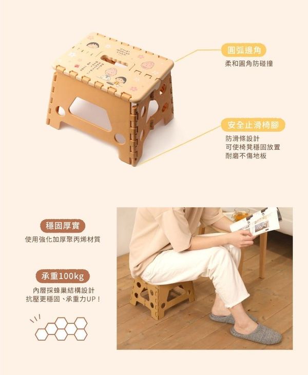 NORNS-櫻桃小丸子 正版 便攜式 摺疊椅 防滑 椅凳 櫈仔 MARUKO 小丸子 (櫻友藏之金句) 【平行進口】