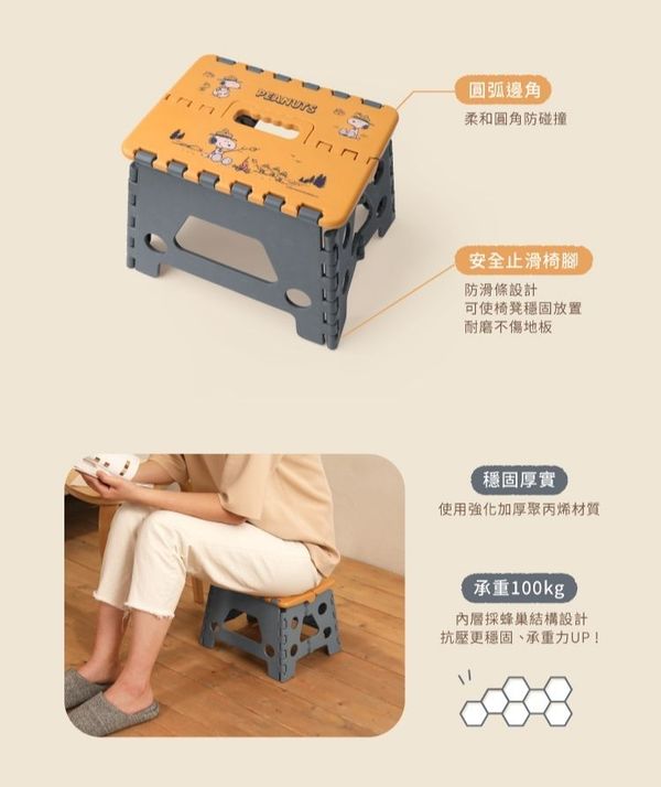 NORNS-PEANUTS SNOOPY 史努比 正版 便攜式 摺疊椅 防滑 椅凳 櫈仔 史奴比 史諾比 (露營) 【平行進口】