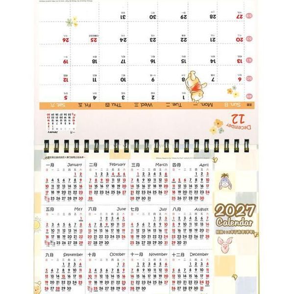 迪士尼-迪士尼 DISNEY WINNIE THE POOH 正版 2026 B6 桌上 線圈 座檯 月曆 桌曆 枱曆 家居 台灣假期 小熊維尼【平行進口】