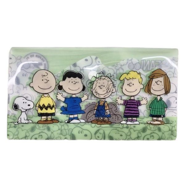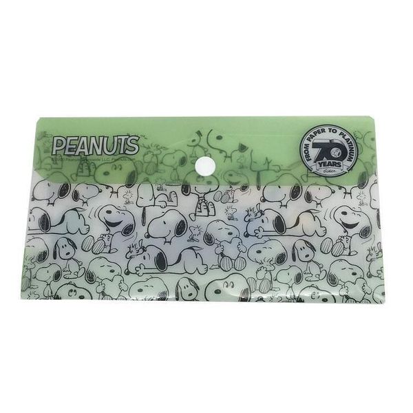 PEANUTS-SNOOPY 史努比 正版 70周年紀念 口罩 收納 口罩套 迷你 文件夾 票夾 分格 便攜 2020年 童趣圖案系列 史奴比 史諾比 (綠) 【平行進口】